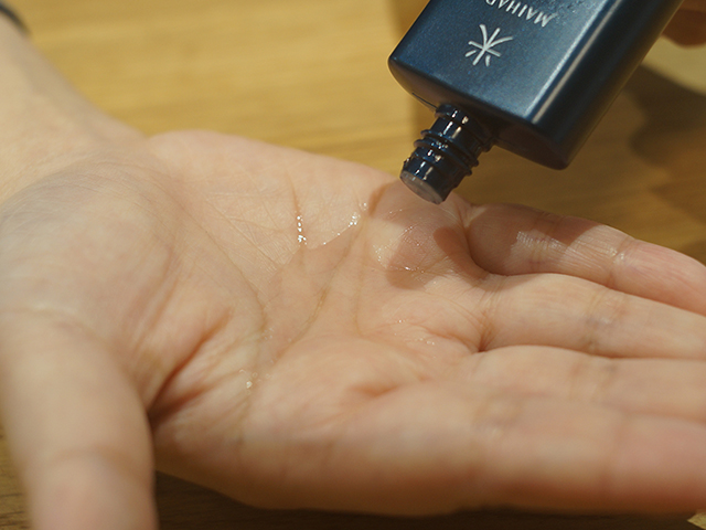 半透明のジェルタイプで、使用目安はパール粒くらいの量。伸びがいいので少量でも顔全体に行き渡ります。